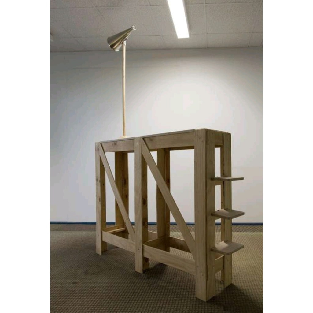 Scaffold for a shout-out INSTALLATIONS Scaffold for a shout-out, plywood, megaphone, 120 x 50 x 220 cm Photo PeterRFischer @Ostrale 2019 Gerelateerd
