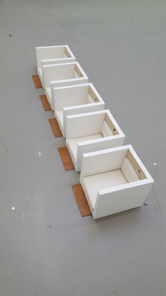 plywood, gesso. foamrubber, cotton, lightbulbs, wallpaper, nails, electric wire, 2016